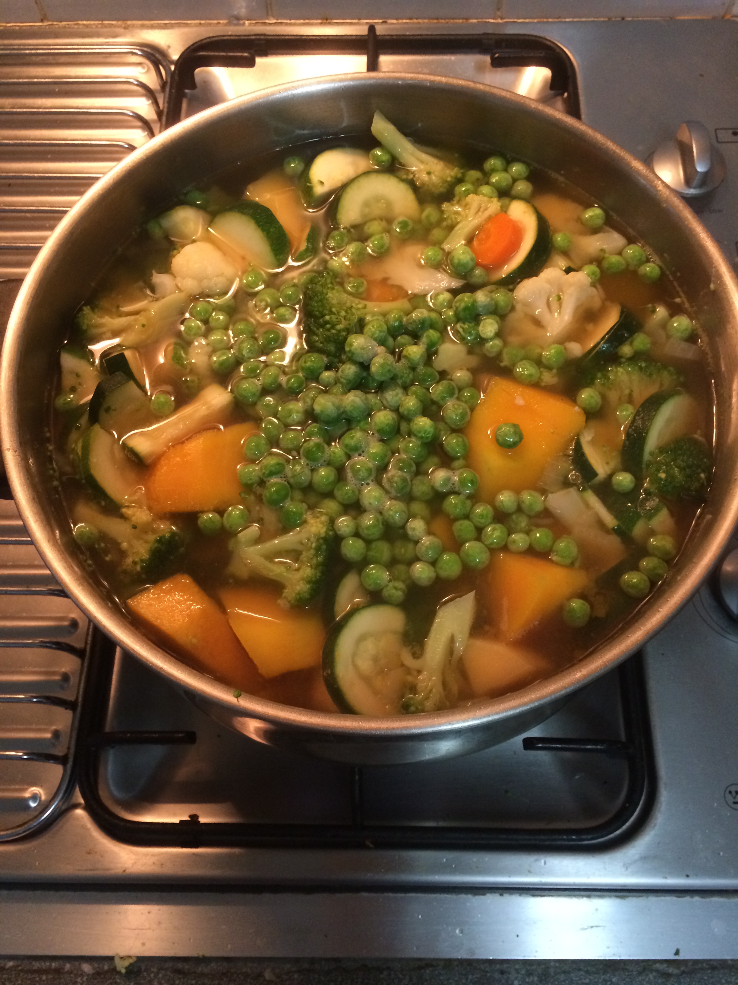 * Chuck all your favourite vegies into a massive stove top pot, with just enough water to cover it.